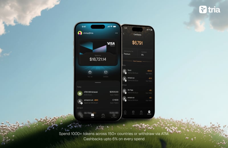 From grabbing coffee in Tokyo to swapping tokens across chains, Tria enables instant, seamless, and fee-free transactions. Its Visa cards function in over 150 countries and support more than 1,000 tokens. Trades are routed through Tria’s BestPath engine for optimized execution, and idle assets earn yield that automatically repays the card balance.